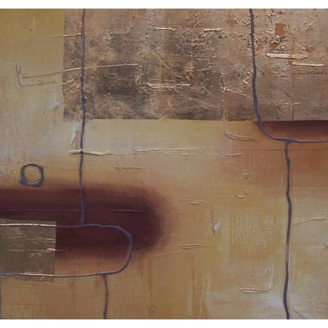 Эксклюзивная картина квадратной формы исполнена современным американским художником в модерновом футуристическом стиле. Реальность и объемность рисунка подчеркивает уникальная текстура светло-коричневого фона, отблескивающего роскошь посредством переливов перламутра. Прямоугольный рисунок отделан настоящим сусальным золотом, в некоторых местах специально стертым для создания эффекта «под старину».