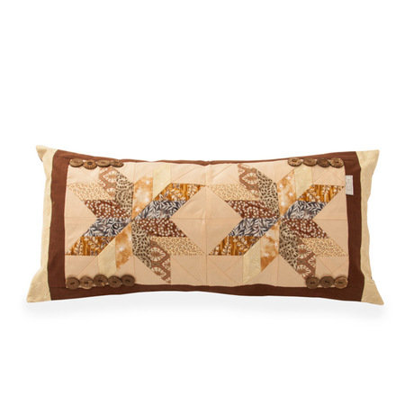 Декор наволочки дополнен четырьмя рядами декоративных пуговиц. Модель выполнена в актуальном стиле пэчворк, привносящем в спальную комнату уют, комфорт и домашнее тепло