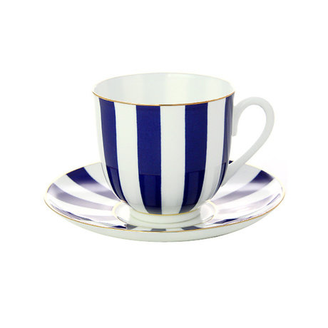 Чайная пара классической формы. Насыщенный синий и белый навевают ассоциации с морской тематикой и легким завтраком на открытой террасе на юге.