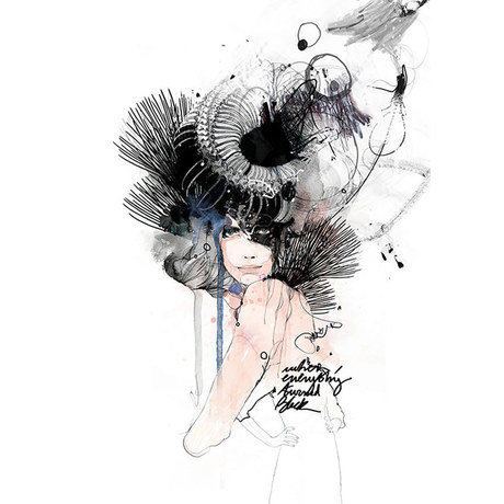Неестественная конструкция вместо шляпки на женской голове отображает запутанность и многообразие мыслей. Утонченный женский образ придаст невероятный шарм вашей домашней или рабочей обстановке.