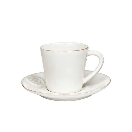 Чайная пара, состоящая из чашки и блюдца белого цвета, выполнена из керамики высокого качества. Такой набор станет настоящим украшением любого стола.