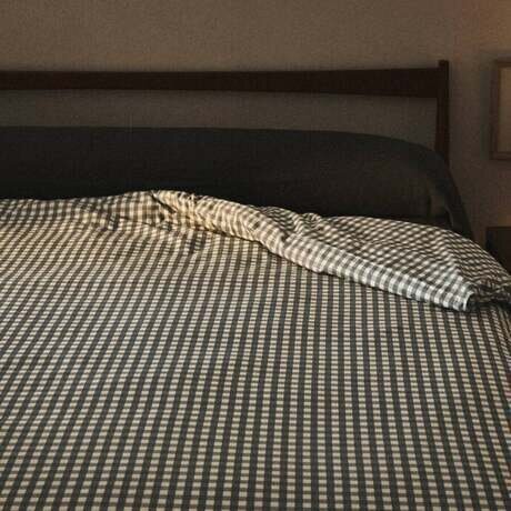 Пододеяльник из стираного хлопка с клетчатым принтом Потайная застежка на пуговицы.