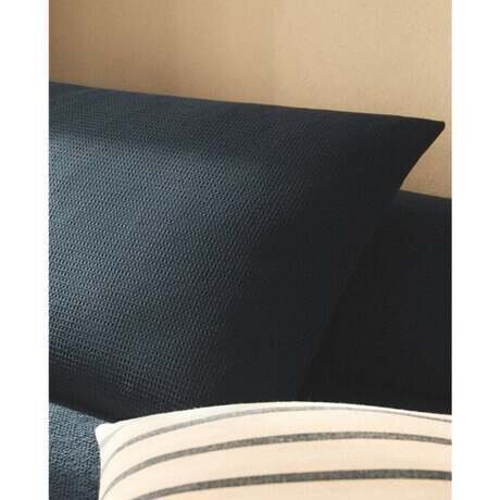 Наволочка вафельной вязки из хлопкового перкаля плотностью 200 нитей. Внутренняя застежка-клапан с одной стороны, за исключением размеров 45 x 110 см и 45 x 155 см, которые открыты с обоих концов.