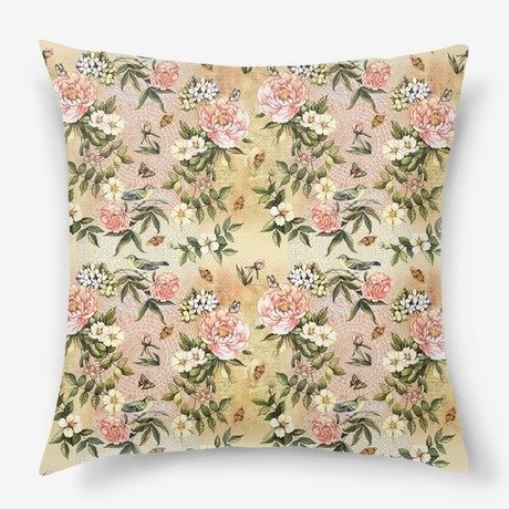 Подушка "Винтажный изящный орнамент с цветами, птичками и кружевами"