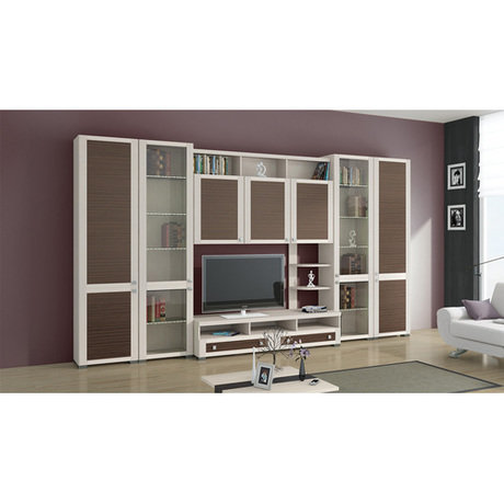 Уютная гостиная с набором самой необходимой современной мебели в приятной цветовой гамме: каркас выполнен в благородном светлом оттенке дуб белфорт, а фасад имеет два оттенка - дуб белфорт и каналы дуба. В состав набора входит: шкаф высокий с глухими дверями - 2 шт., шкаф высокий со стеклянными дверями - 2 шт., шкаф навесной большой с глухими дверями - 1 шт., полка большая - 1 шт., тумба большая - 1 шт., секция открытая малая - 1 шт.
