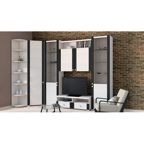 Уютная гостиная с набором самой необходимой современной мебели в приятной цветовой гамме: каркас выполнен в благородном светлом оттенке дуб белфорт, а фасад имеет два оттенка - дуб белфорт и комби. В состав набора входит: шкаф высокий комбинированный - 2 шт., шкаф навесной малый с глухими дверями - 1 шт., полка малая - 1 шт., тумба малая - 1 шт., шкаф угловой - 1 шт., стеллаж торцевой - 1 шт.