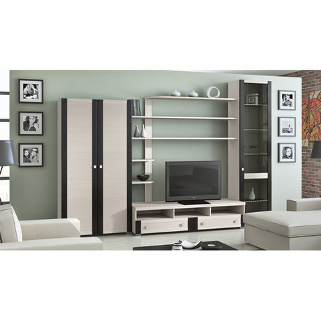 Уютная гостиная с набором самой необходимой современной мебели в приятной цветовой гамме: каркас выполнен в благородном светлом оттенке дуб белфорт, а фасад имеет два оттенка - дуб белфорт и комби. В состав набора входит: шкаф высокий со стеклянными дверями - 1 шт., тумба большая - 1 шт., шкаф низкий с глухими дверями - 2 шт., секция открытая большая - 1 шт.