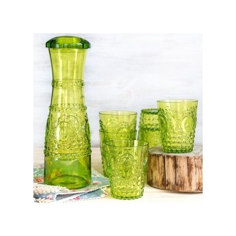 Изящный и легкий набор, состоящий из графина яркого салатового цвета и 6-ти стаканов для воды, создан для красивой подачи прохладительных напитков как в квартирах, так и на летних верандах загородных домов. Надежно сохранит ваш любимый лимонад или компот, благодаря надежной крышке с силиконовым уплотнителем.