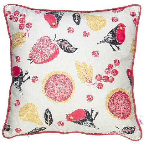 Чехол для декоративной подушки "снегирь и фрукты", 45х45 см