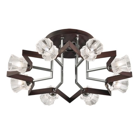 Назначение светильника: для комнаты, Стиль светильника: модерн, Материал светильника: стекло, металл, Ширина: 600, Диаметр: 600, Высота: 220, Количество ламп: 8 шт, Тип лампы: галогенная, Мощность: 40 Вт, Патрон: G9, Цвет арматуры: коричневый