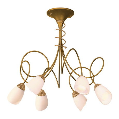 Назначение светильника: для гостиной, Стиль светильника: модерн, Тип: потолочная, Материал: стекло, металл, Диаметр: 580, Высота: 530, Количество ламп: 6 шт, Тип лампы: накаливания, Мощность: 60 Вт, Патрон: Е14, Цвет арматуры: золото