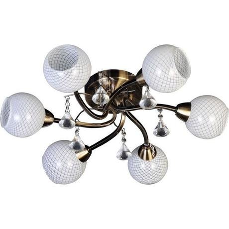 Назначение светильника: для гостиной, Стиль светильника: флористика, Материал светильника: металл, стекло, хрусталь, Длина (мм): 550, Ширина: 550 мм, Высота: 260 мм, Количество ламп: 6 шт, Тип лампы: накаливания, Мощность: 60 Вт, Патрон: Е14, Цвет арматуры: матовое серебро