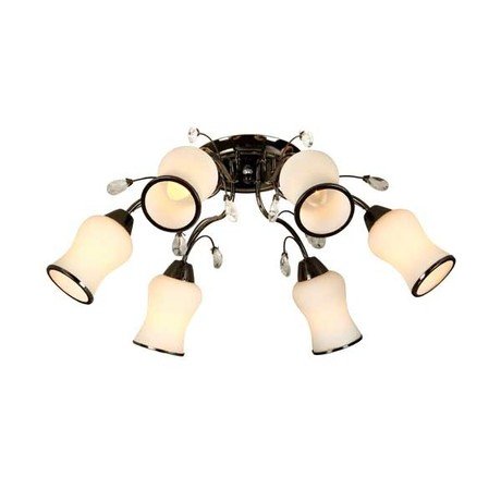 Назначение светильника: для гостиной, Стиль светильника: модерн, Материал светильника: металл, стекло, Длина (мм): 610, Диаметр: 610 мм, Высота: 230 мм, Количество ламп: 6 шт, Тип лампы: накаливания, Мощность: 40 Вт, Патрон: Е14, Цвет арматуры: хром
