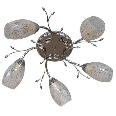 Назначение светильника: для гостиной, Стиль светильника: модерн, Материал светильника: металл, стекло, Диаметр: 520 мм, Высота: 240 мм, Количество ламп: 5 шт, Тип лампы: накаливания, Мощность: 60 Вт, Патрон: Е14, Цвет арматуры: золото/коричневый