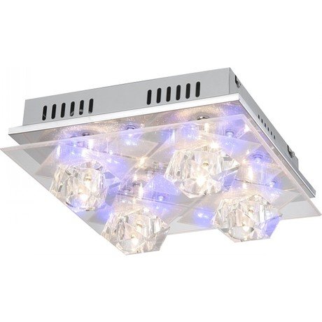 Назначение светильника: для гостиной, Стиль светильника: модерн, Тип: потолочная, Материал светильника: металл, стекло, пластик, Длина: 300 мм, Ширина: 300 мм, Высота: 130 мм, Количество ламп: 4 шт, Тип лампы: галогенная, Мощность: 20 Вт, Патрон: LED, Цвет арматуры: хром
