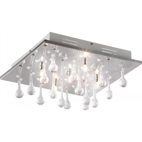Назначение светильника: для гостиной, Стиль светильника: модерн, Тип: потолочная, Материал светильника: металл, стекло, Длина: 350 мм, Ширина: 350 мм, Высота: 180 мм, Количество ламп: 5 шт, Тип лампы: галогенная, Мощность: 20 Вт, Патрон: G4, Цвет арматуры: хром