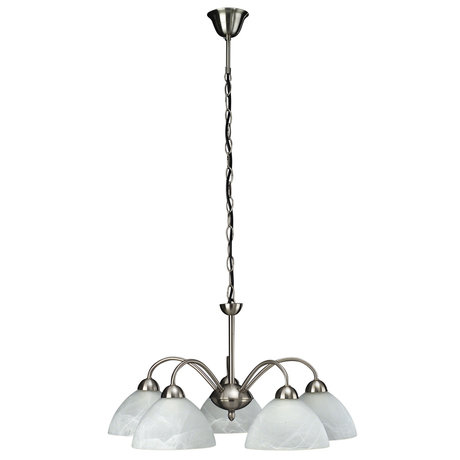 Назначение светильника: для гостинной, Материал: ротанг, Количество ламп: 5 шт, Тип лампы: накаливания, Мощность: 40 Вт, Патрон: Е14, Цвет арматуры: никель