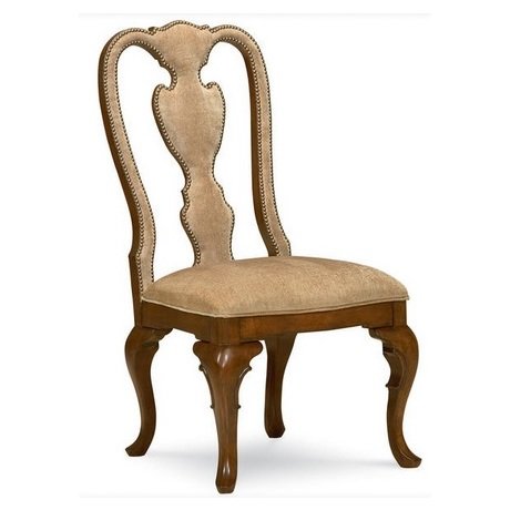 Стул из коллекции New London с резной спинкой, отделанной текстилем и украшенной гвоздиками с широкой шляпкой. Высота сиденья составляет 48 см., глубина 49 см., ширина 53 см.