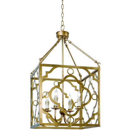 Оригинальная четырехрожковая люстра Soleil Cube в кубе.