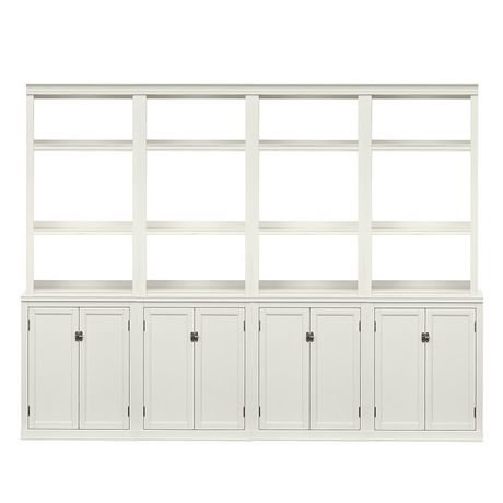 Включает в себя: четыре отделения с дверцами, четыре открытых книжных шкафчика.