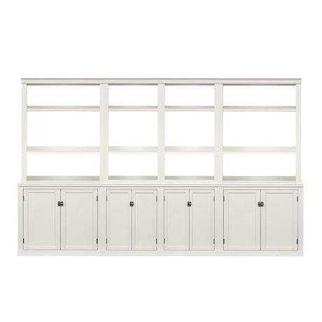 Включает в себя: четыре отделения с дверцами, четыре открытых книжных шкафчика.