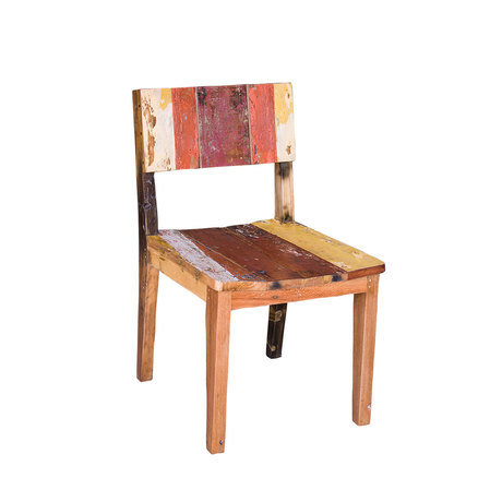 Стул, выполненный из массива древесины старого рыбацкого судна, такой как: тик, махогон, суар, с сохранением оригинальной многослойной окраски.