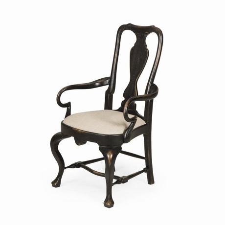 Элегантное полукресло с резной спинкой, ручками и ножками.