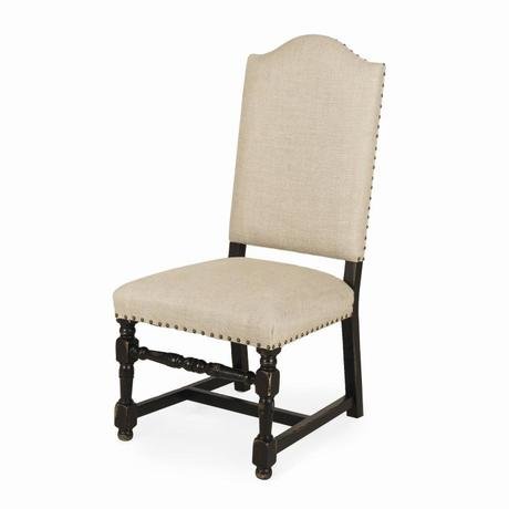 Элегантный стул с мягкой обивкой спинки и сидения, украшенной маленькими гвоздиками.