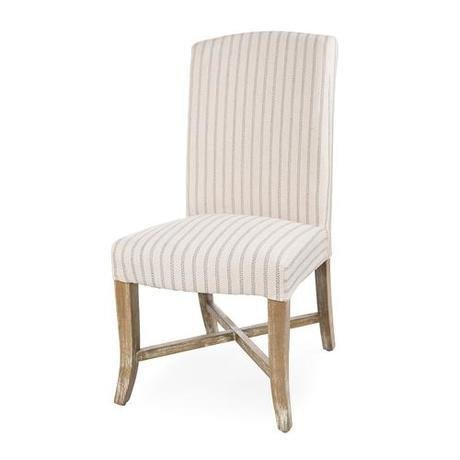 Комфортный и уютный обеденный стул с высокой мягкой спинкой в обивке белого цвета в полоску.