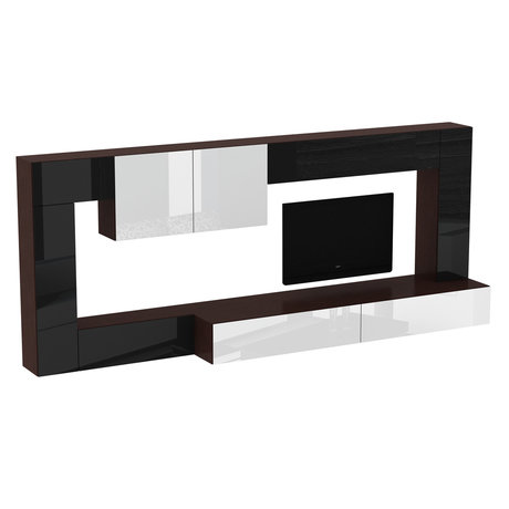 Композиция для гостиной. Все модули коллекции Сubo крепятся к стене. Двери шкафов и выдвижные ящики открываются по принципу «нажал-открыл». Глубина шкафов: 37 см.