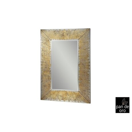 Зеркало со стеклянной рамкой с покрытием из сусального золота. Задняя часть из МДФ, лакированного в черный цвет.