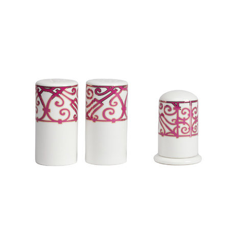Функциональный и стильный набор для специй является неотъемлемым предметом сервировки стола. Набор для специй коллекции «Sienna» выполнен из белоснежного костяного фарфора и декорирован замысловатым орнаментом лилового цвета в стиле модерн (moderne). В комплект входят солонка, перечница и набор для зубочисток.